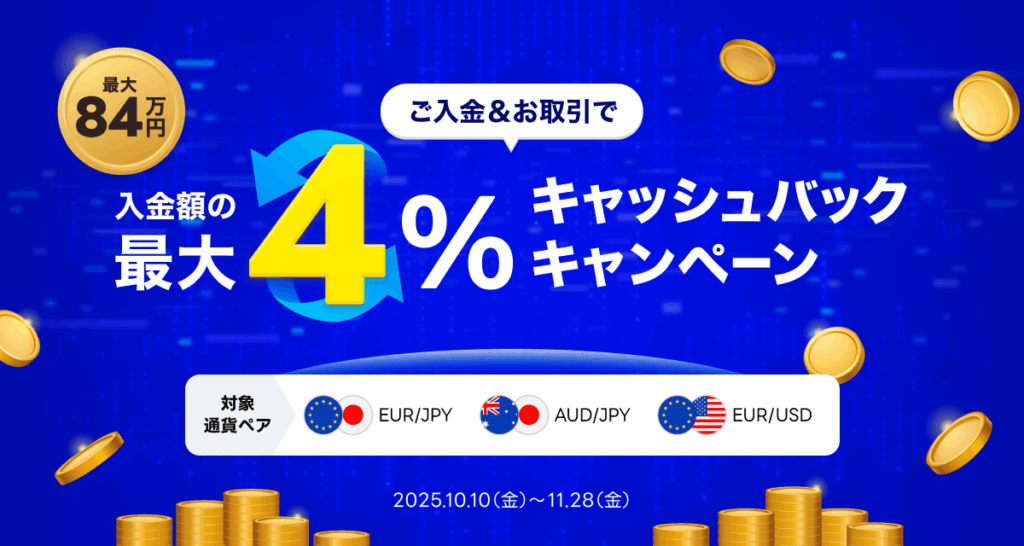 新規取引数量と入金額の2つの条件のうち、ご達成条件が低い方を適用しキャッシュバックいたします。